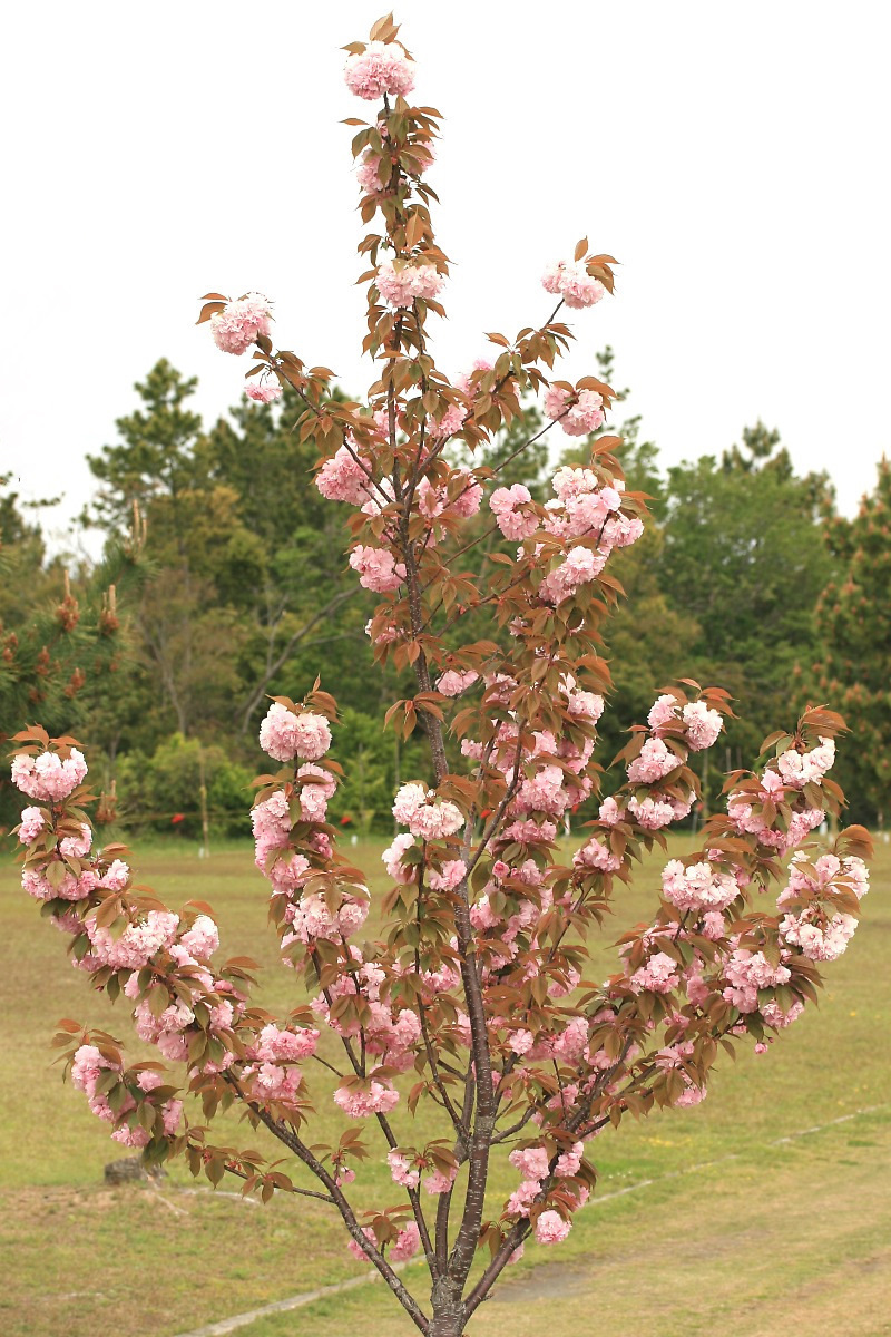MEMO: 満開時期を迎えた関山で、若木のため木全体に花は付いていないが、 八重の大輪が部分的に塊となって咲く姿は豪華で見ごたえがある