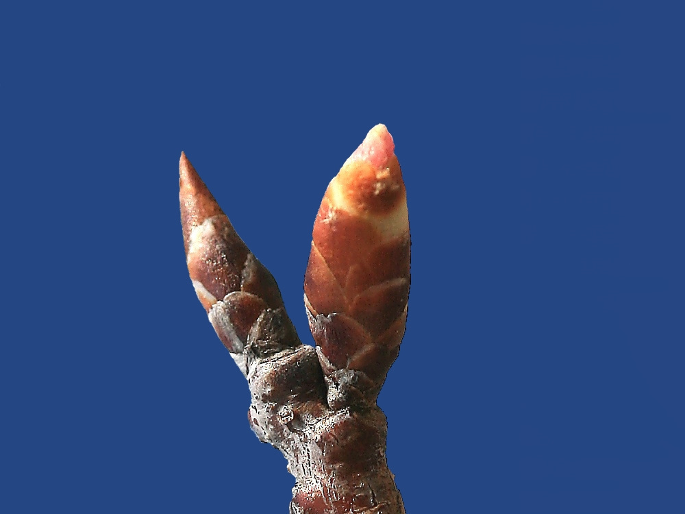 MEMO: 寒緋桜の冬芽で、膨らみ始め先端に淡紅色が見え始めたところ