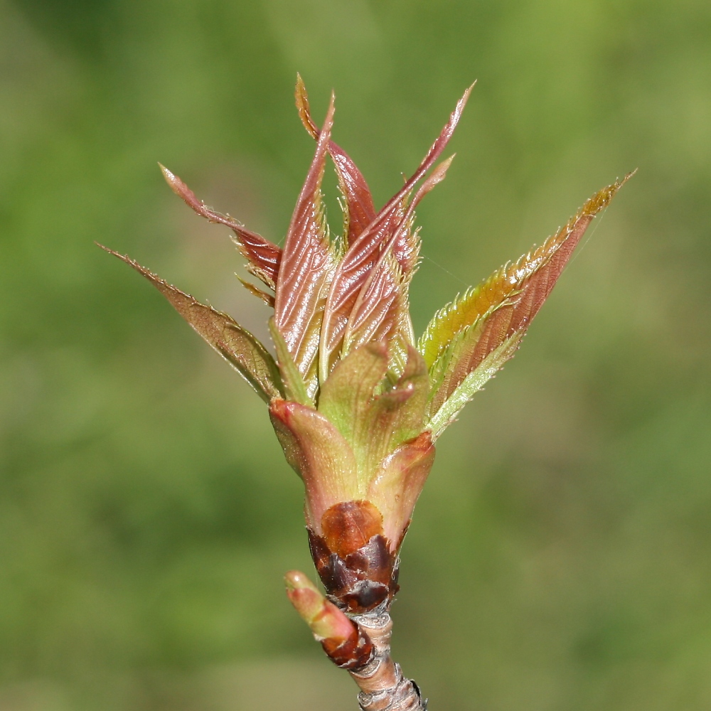 MEMO: 菊枝垂は、開花前に赤茶色や黄緑色の若葉が出始める
