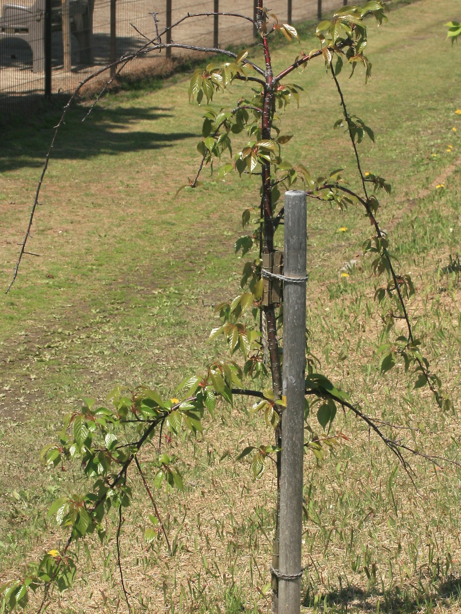 MEMO: 花時期が終った菊枝垂で、植栽5年目であるが、 木は殆ど成長しておらず、非常に貧弱な樹形である