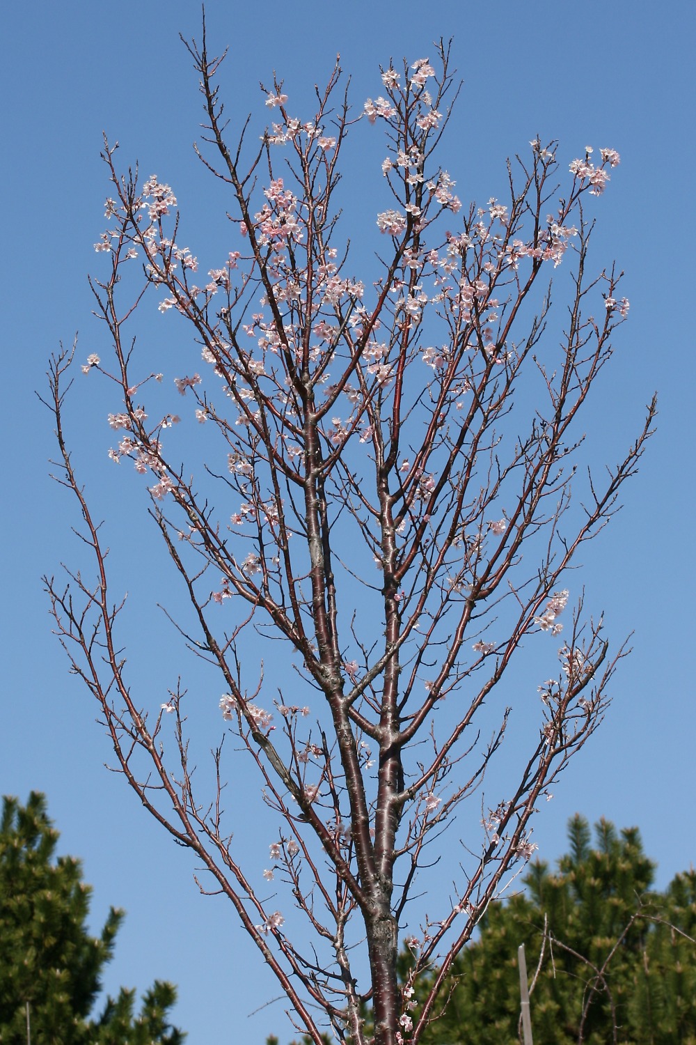 MEMO: 5分咲きの啓翁桜で、潮風が強い所に咲いているため、木の 傷みが激しく、木全体にはつぼみが付いておらず、華やかさが望めない