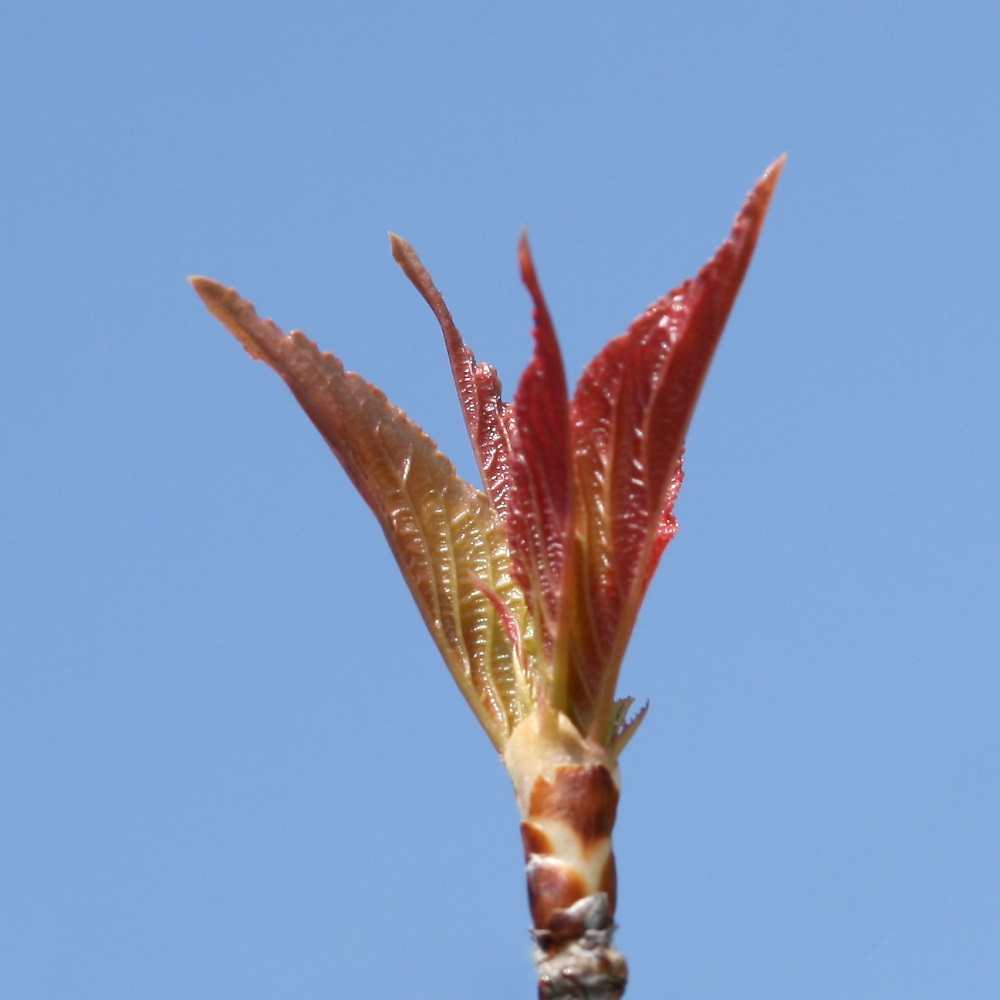 MEMO: 啓翁桜は花時期が終了した頃から赤茶色の葉が出始める