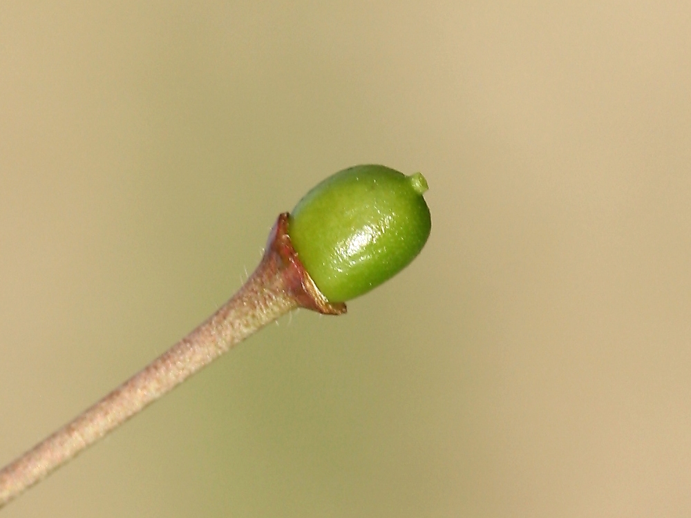 MEMO: 結実したばかりの啓翁桜の実で、啓翁桜は比較的よく結実し、 釣鐘形の濃緑色の実をつけるが、完熟するまでに殆どが落果してしまう
