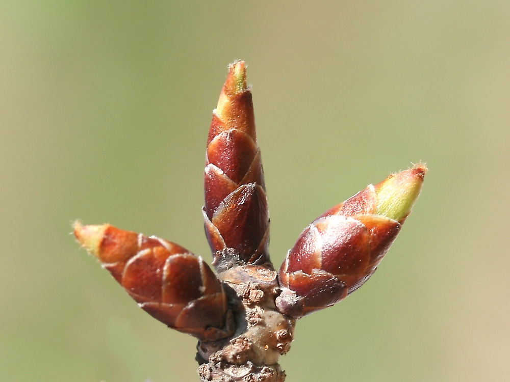 MEMO: 膨らみが増した兼六園菊桜の冬芽で、先端の 淡黄緑色や淡紅色がはっきりしてきたところ