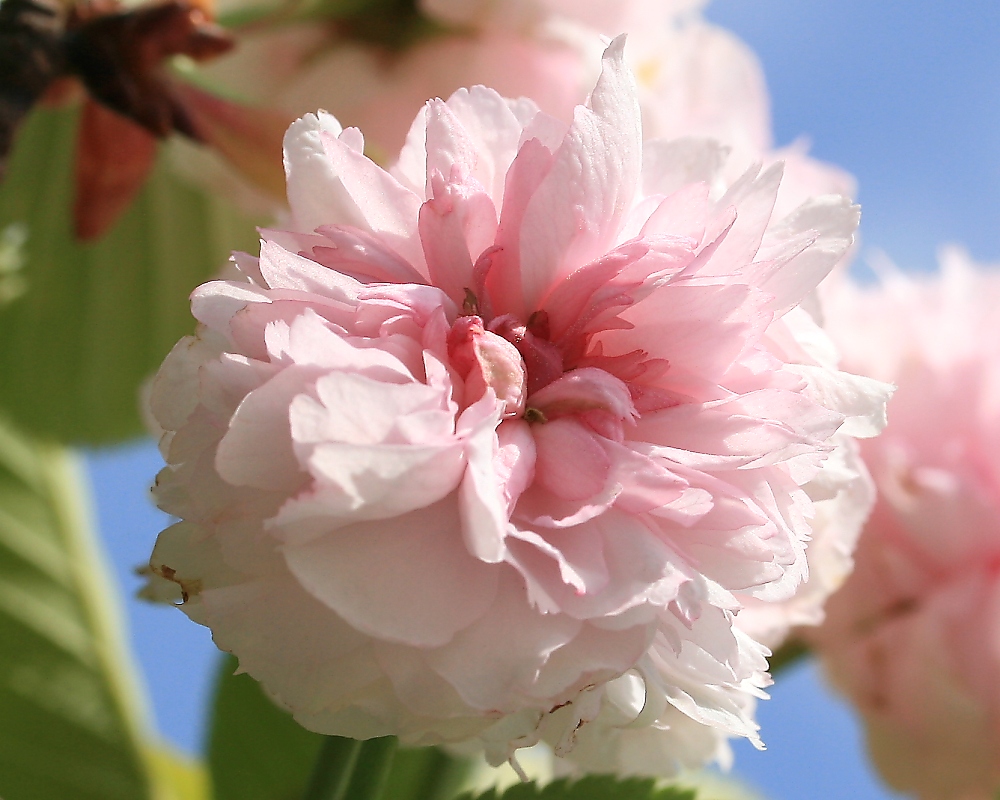 MEMO: 7分咲きの兼六園菊桜で、菊咲きの代表種で、花弁の数は 300枚とも言われており、この花も中心部分がどのようになっている のかよく見えない状態で、雄しべ・雌しべも全く見えない状態である