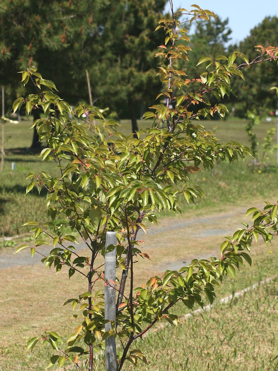 MEMO: 葉桜の琴平で、木の傷みが激しく、植栽5年目 でもこの樹形であり、殆ど成長していない状況である