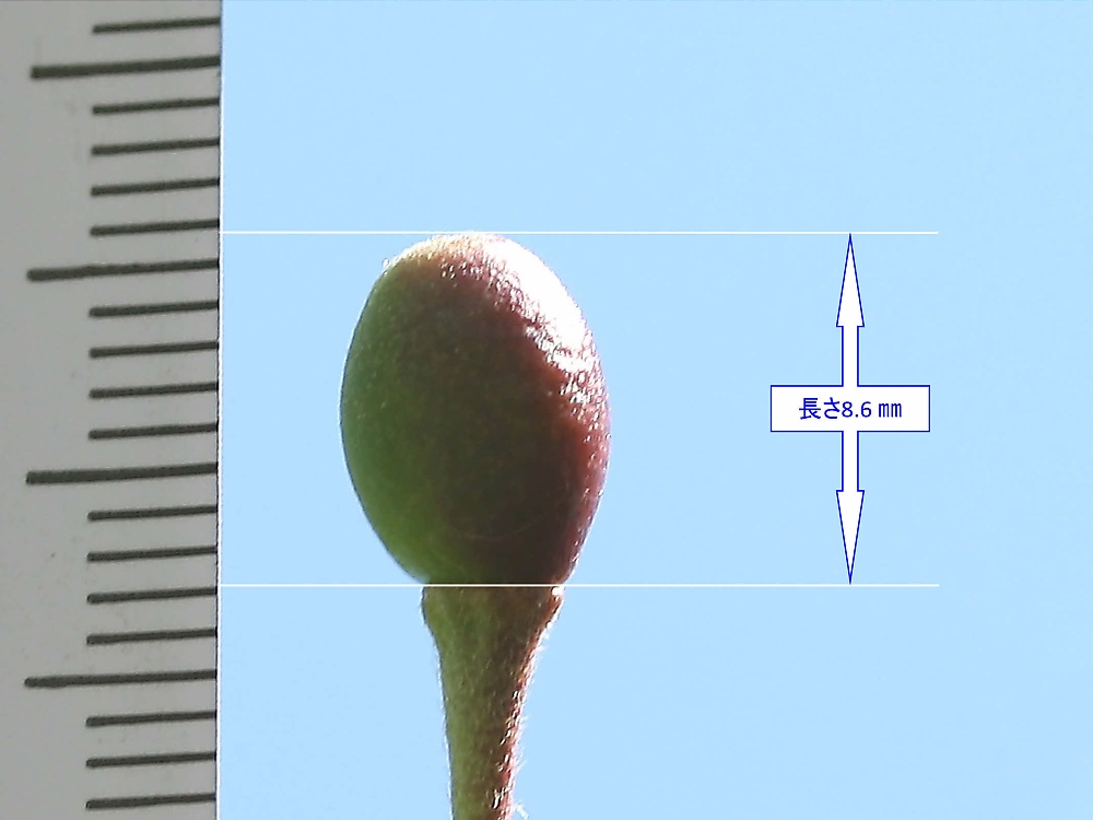 MEMO: 小彼岸桜の実の長さで、2週間前は 8.0 ㎜だったものが、 8.6 ㎜と殆ど大きくなっておらず、今後は熟していくものと思われる
