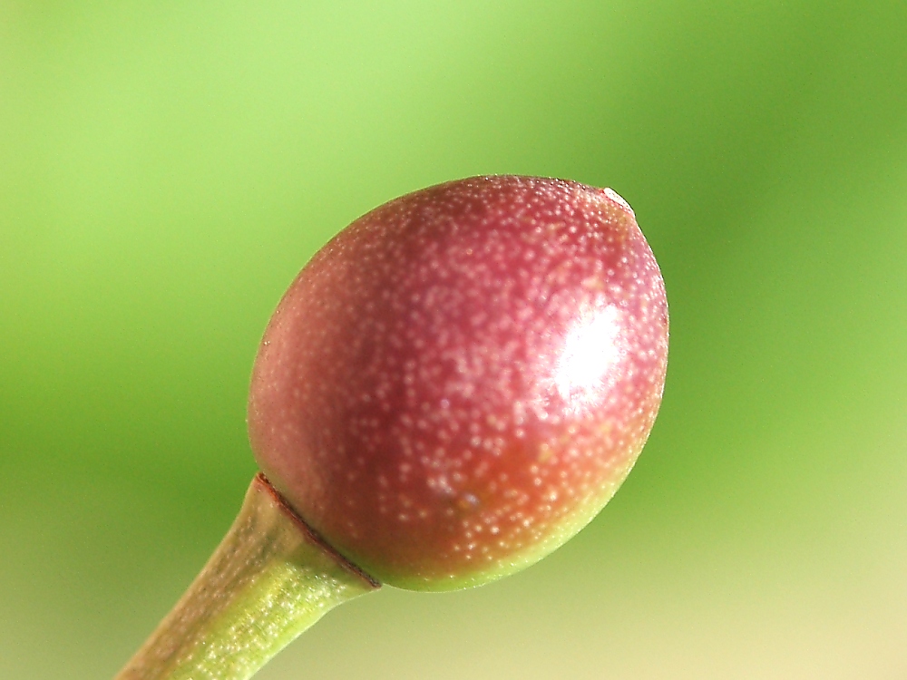 MEMO: 佐野桜の実で、色が赤くなりだしており、熟し始めた実で、 この先、色が黒くなりだし黒熟すると思われる