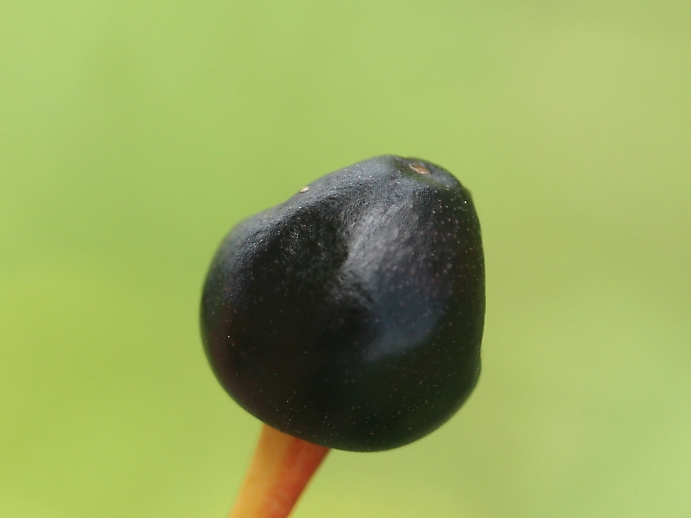 MEMO: 佐野桜の実で、真っ黒な実で完熟(黒熟)した実であるが、 やや萎れかけていると思われ、もう少し早いと綺麗な実が見れた
