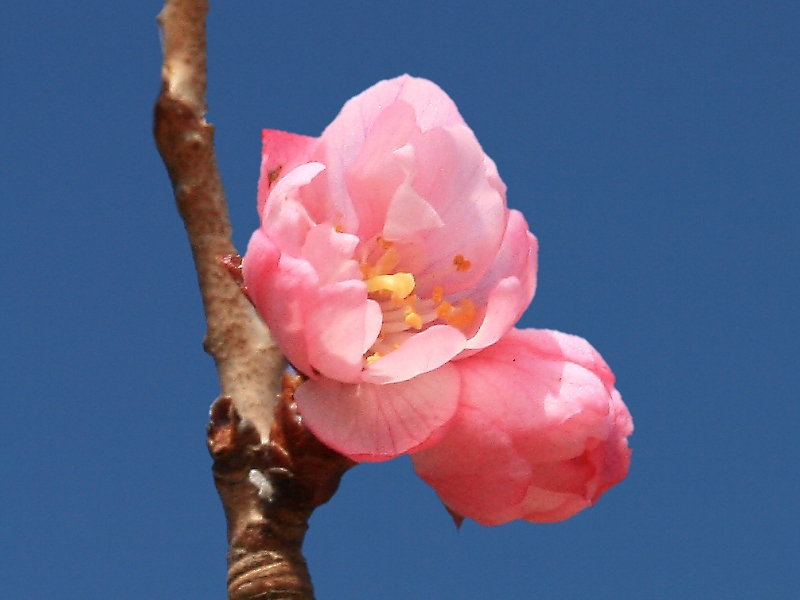 MEMO: ニ季咲きの十月桜が冬中咲続けており、淡紅色がとても美しい桜で、 花弁が波打った長方形という珍しい形で、花色も淡紅色~紅色と色豊かである