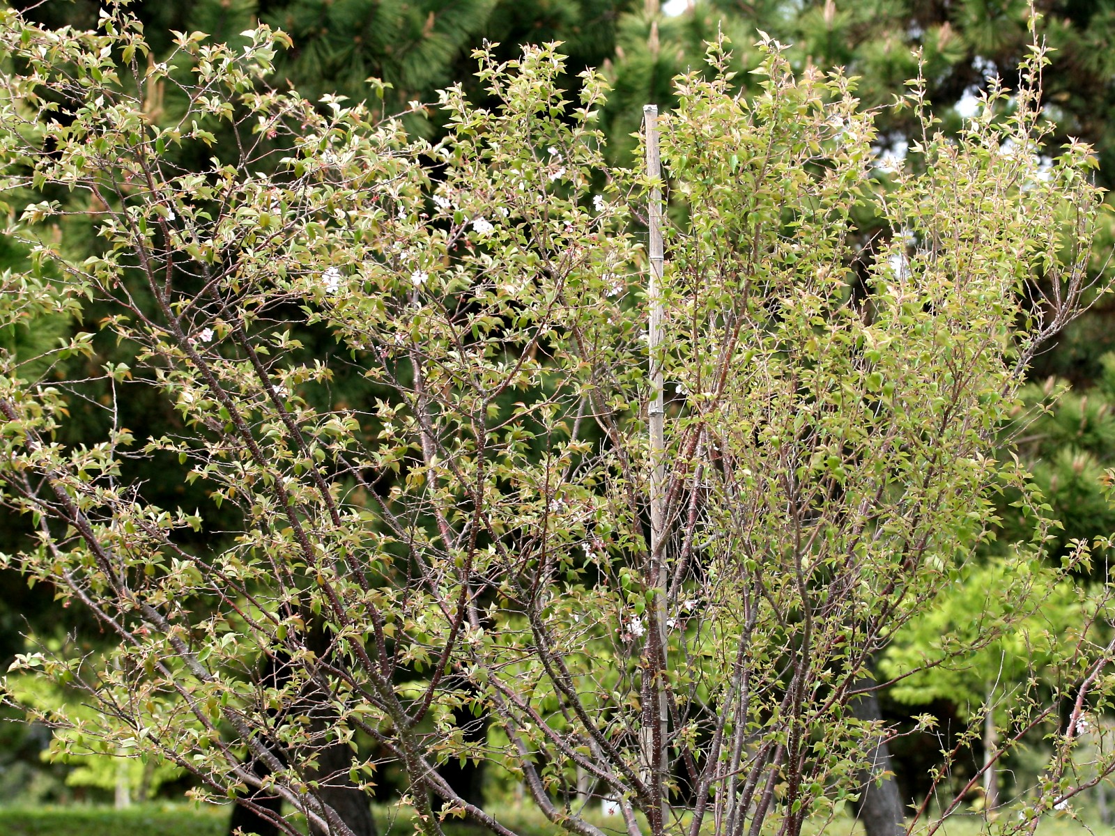 MEMO: すっかり葉桜となった十月桜で、小さな淡緑色の若葉で覆われている