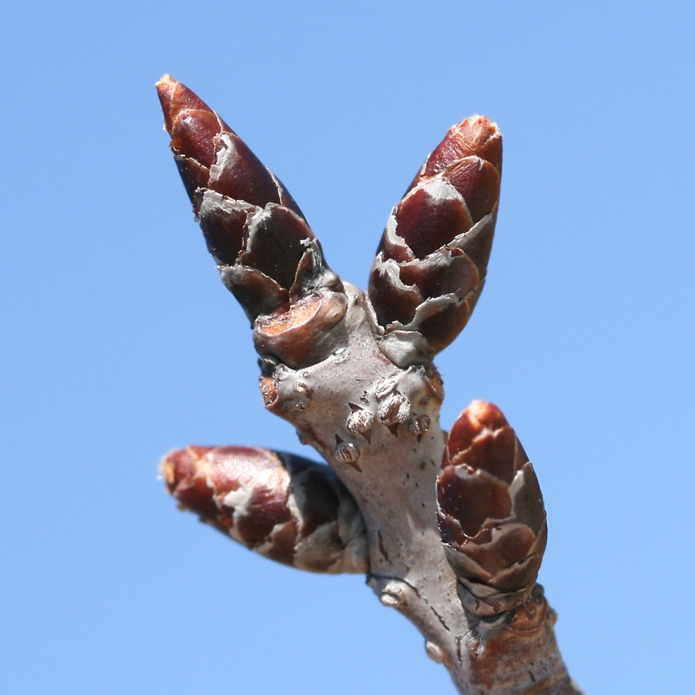 MEMO: 膨らみ始めた朱雀の冬芽で、先端にわずかに淡紅色が見え始めたところ