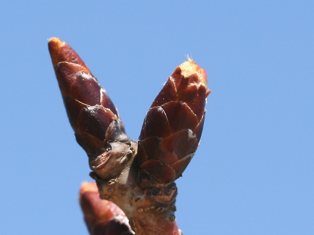 MEMO: 膨らみが増した朱雀の冬芽で、先端の 淡紅色や淡黄緑色がはっきり見え初めてきたところ