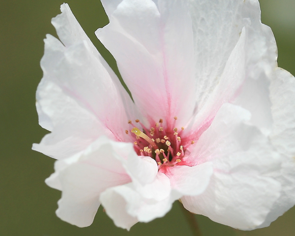 MEMO: 花時期が終り間近の朱雀で、個の頃になると花の中心が 濃紅色になり、雄しべも淡紅色になり、別の顔を見せるようになる