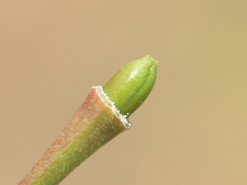 MEMO: 結実したばかりの朱雀の実で、朱雀は半八重であるが普通に結実する 品種で、結実したばかりはこのように緑色をしており、形は釣鐘形である