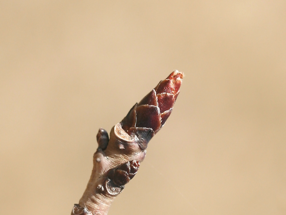 MEMO: 膨らみ始めた松月の冬芽で、先端がわずかに開き始めてきたところ