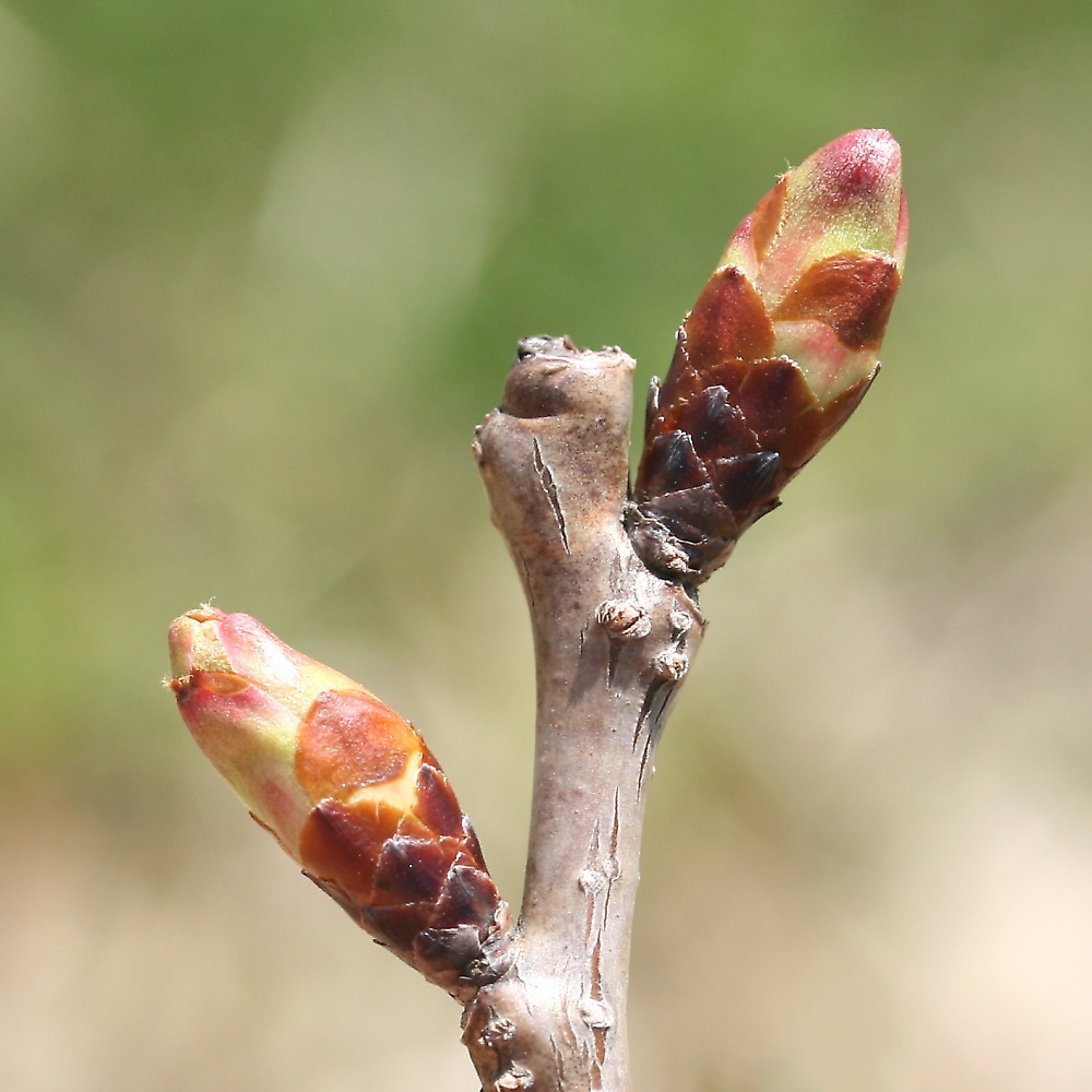 MEMO: 膨らみが更に増した須磨浦普賢象の冬芽で、先端の 淡紅色や淡黄緑色の部分が伸び、まもなく葉が出始めるところ