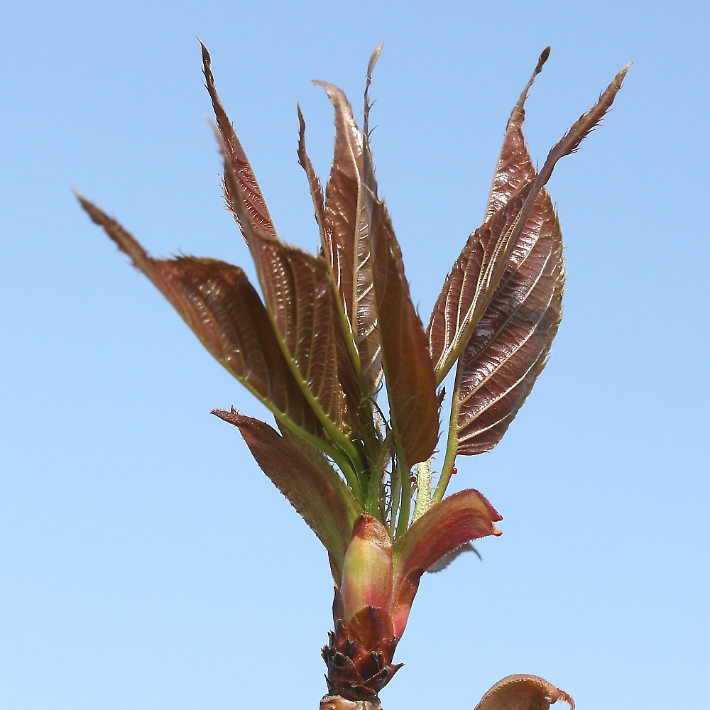MEMO: 須磨浦普賢象は、開花と同時に濃褐色の若葉が出始める