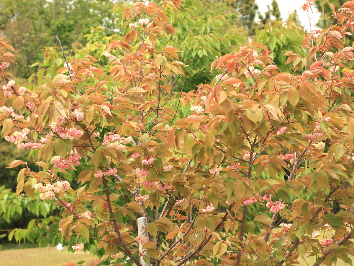 MEMO: 花時期が終り間近のた須磨浦普賢象で、殆どの花が赤みを帯びて、 茶褐色の葉も茂ってきており、花時期の終わりが近づいているところ