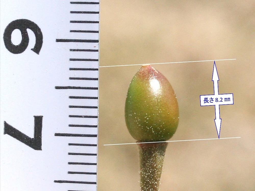 MEMO: 結実した衣通姫の実長さで、結実して 間がないが長さ 8.2 ㎜と比較的大きい実である