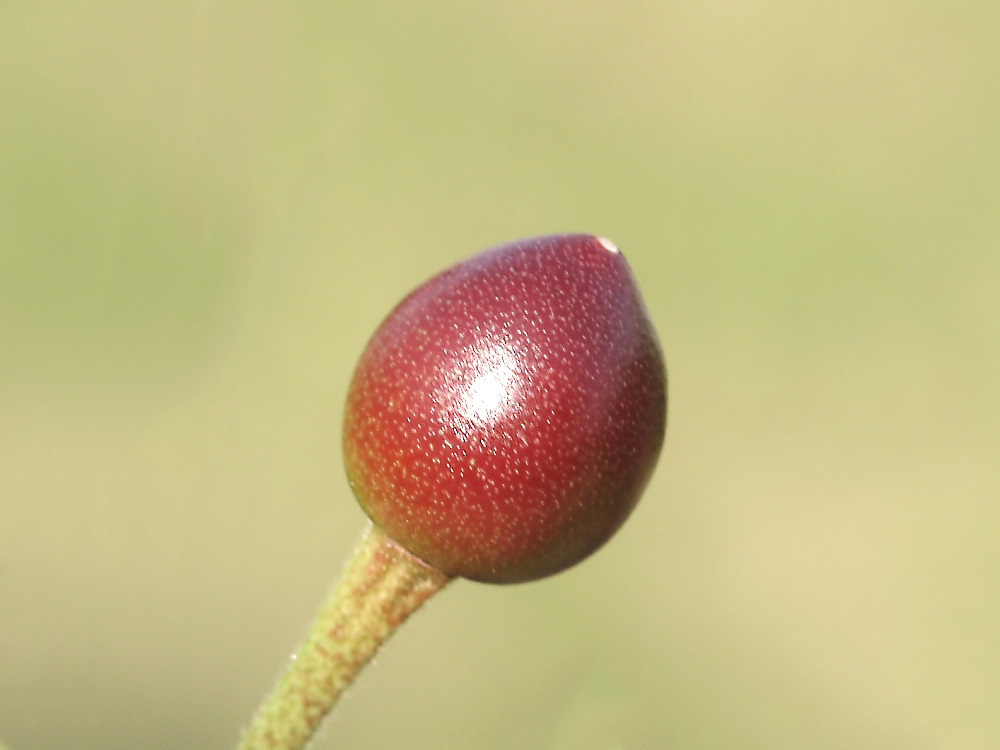 MEMO: 結実した衣通姫の実で、形も球形に近づき、 色も黒紅色になり、熟し始めたと思われるところ