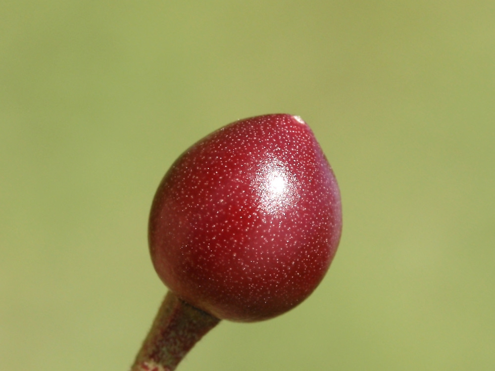 MEMO: 結実した衣通姫の実で、形も球形に近づき、 色も全体が黒紅色になり、熟し中と思われるところ
