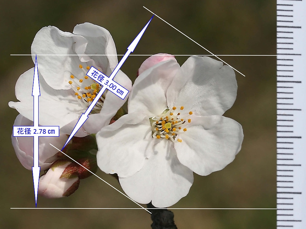 MEMO: 染井吉野の花の直径は、3 ㎝前後で中輪で、 花弁が多少波打っており、花姿としては美種には入らない