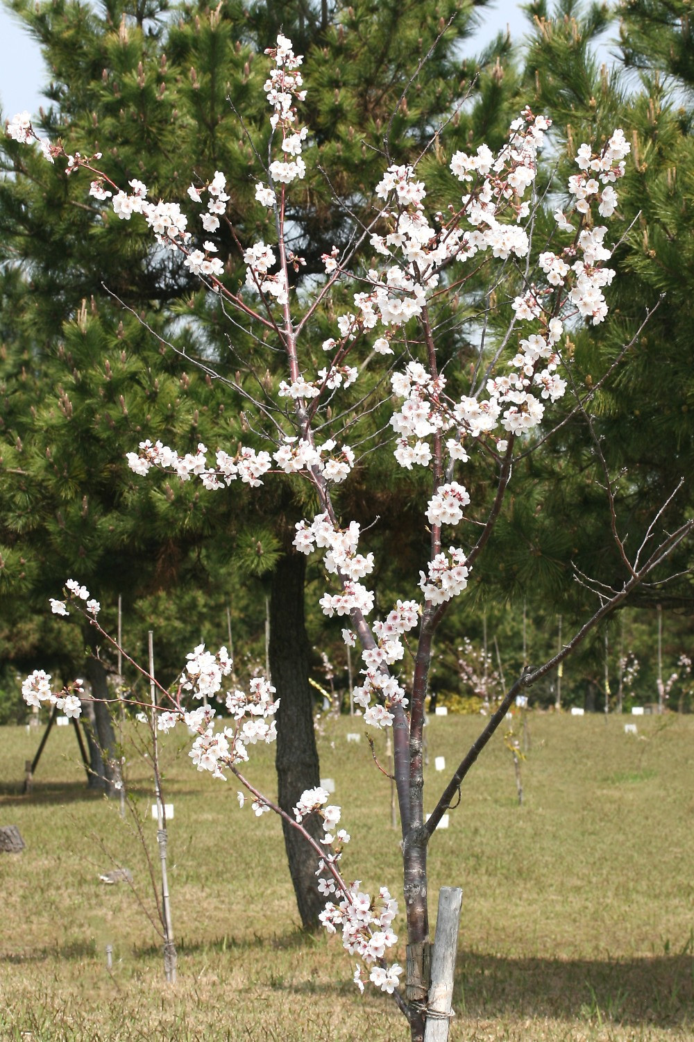 MEMO: 満開時期を迎えた染井吉野で、枝いっぱいに 花は付いてるが、若木のため今一歩華やかさに欠ける