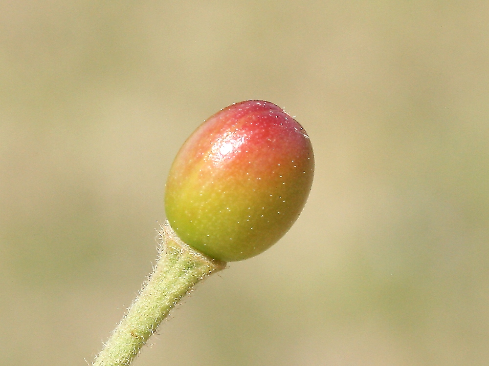MEMO: 結実した染井吉野の実で、卵形で結実して間もないが、 もう赤い色が付き始めており、この先の成長が楽しみである