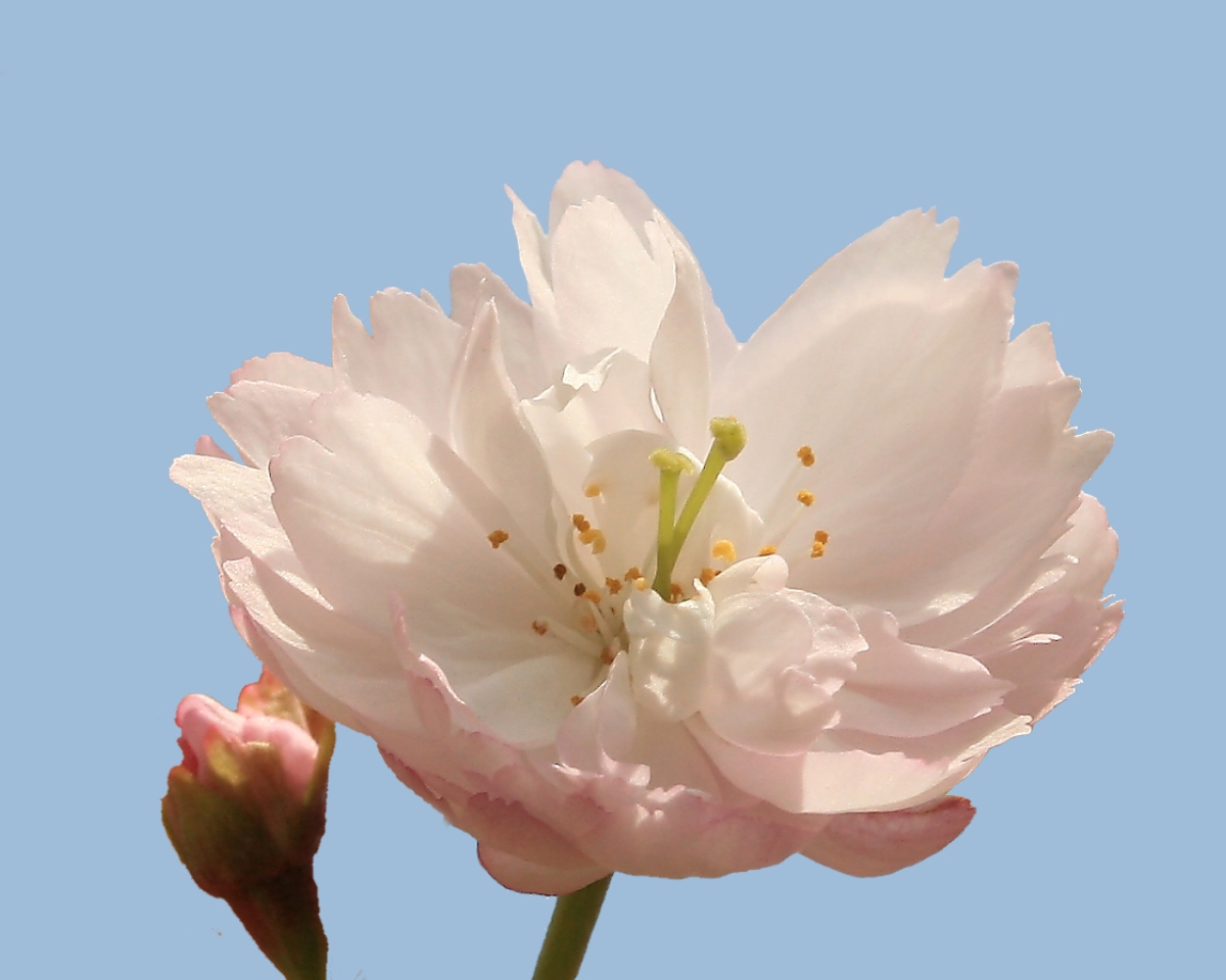 MEMO: 開花したばかりの奈良の八重桜で、淡紅色の半八重の中輪で、 可憐な桜で、雌しべが2個ある花が多いことも特徴の一つである