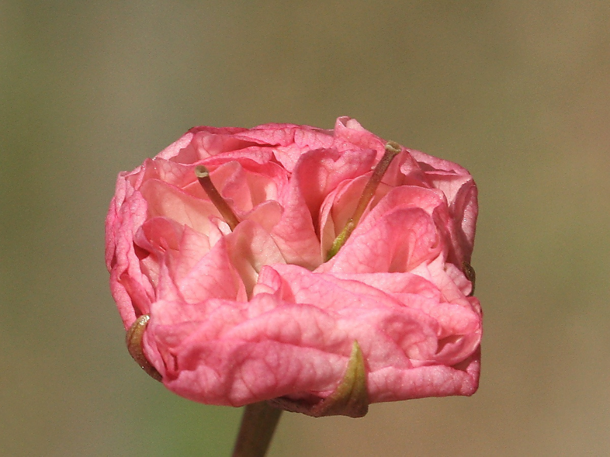 MEMO: 花弁が開き始めており、開花が間近な普賢象で、つぼみの中心に 2個の雌しべが確認でき、これは葉化雌しべであり、普賢象の特徴でもある