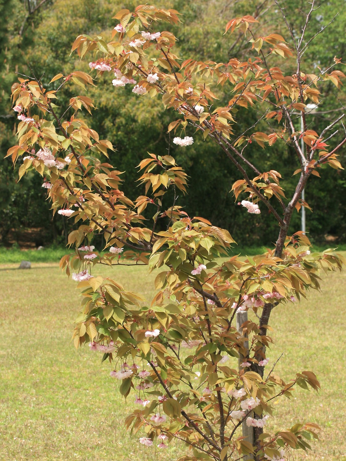 MEMO: 散り始め時期を迎えた普賢象で、茶色の葉が茂り始め、 花は下垂して咲くため、華やかさが無くなってきたところ