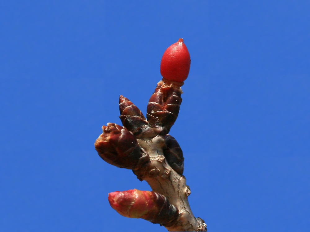 MEMO: 結実したばかりの冬桜の果実であるが、果実の下が鱗片で覆われた 冬芽状態であり、どうしてこのような実ができたが実に不思議で興味津々である