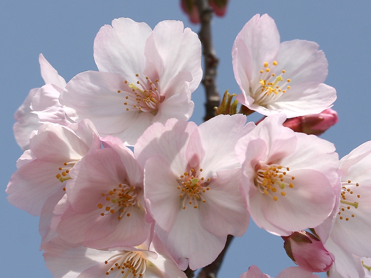 MEMO: 5~7分咲きの豆桜で、淡紅色の一重の中輪ないし大輪の 花姿が整っている花が密に咲くさまはとても見ごたえがある