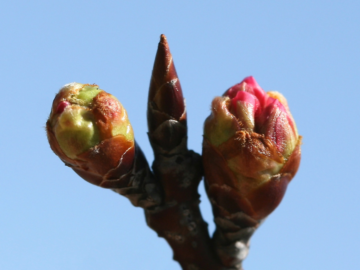 MEMO: 雅の冬芽で膨らみが更に増し、先端が割れはっきり とつぼみが出始めていることがわかるようになってきたところ