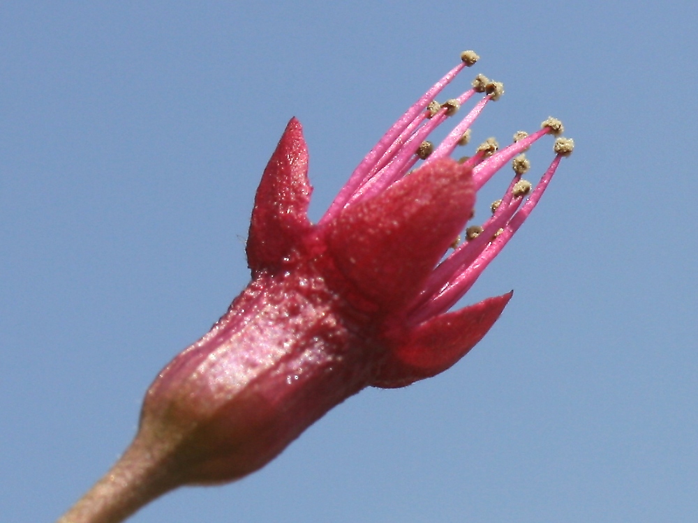 MEMO: 花弁が散って紅色の萼と雄しべが残った花で 花時期が終わっても別の顔を見せてくれる