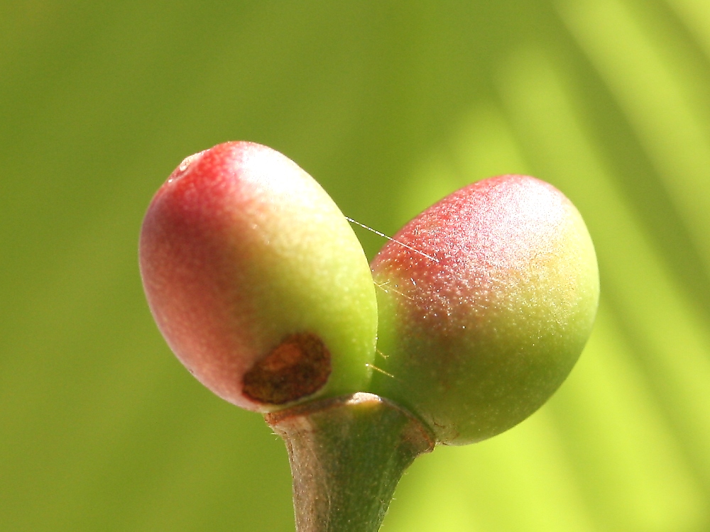 MEMO: 雅の実で、雅によくみられる双子の実であるが、 今年はこの1個のみで、それも虫に食われて哀れな形である