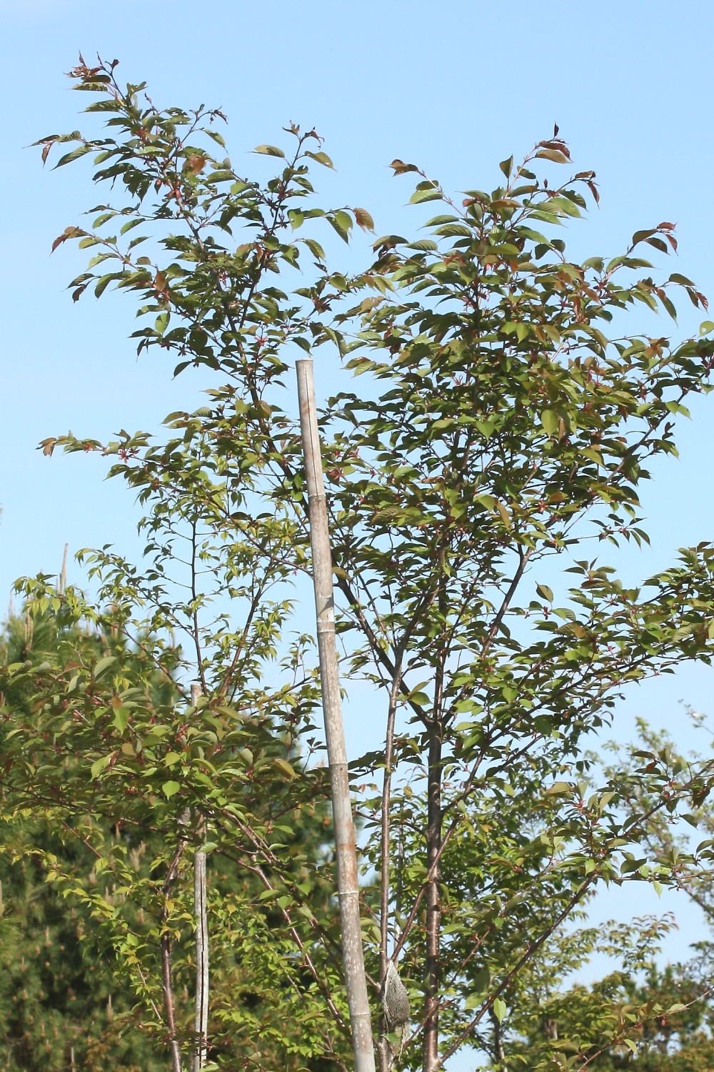 MEMO: すっかり葉桜となった山桜で、淡緑色の若葉で覆われている