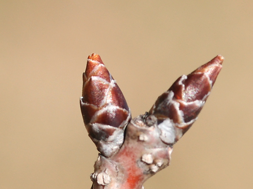 MEMO: 膨らみ始めた楊貴妃の冬芽で、先端にわずかに淡紅色が見え始めたところ