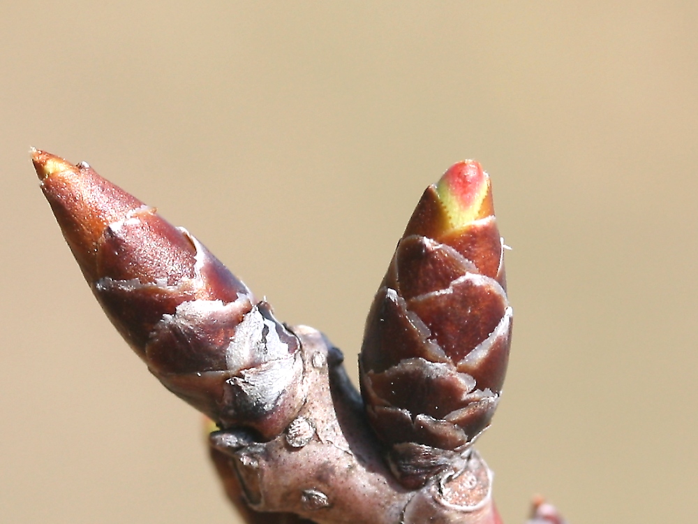 MEMO: 膨らみが増した楊貴妃の冬芽で、先端の淡紅色がはっきりしてきたところ