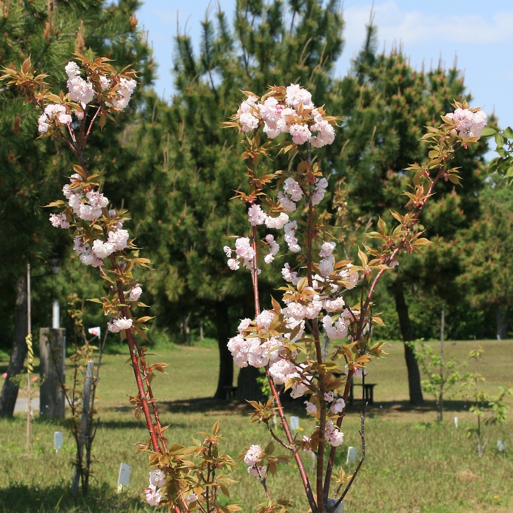 MEMO: 散り始めた楊貴妃で、全体の感じは満開とあまり変わりないが、 花色が少し赤みを帯びてきており、散り始め時期に入ったところ