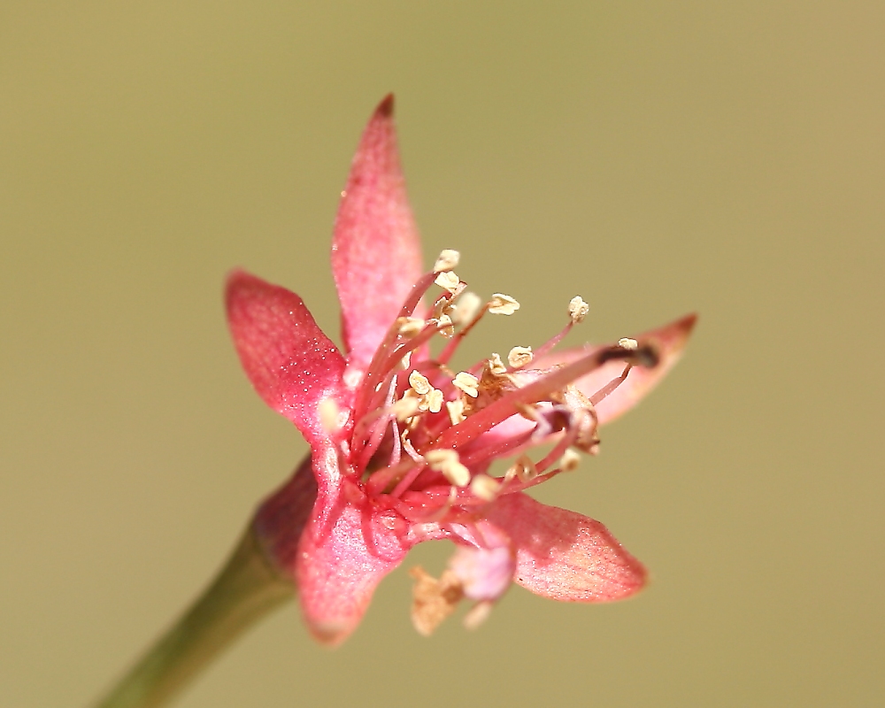 MEMO: 散り始めた楊貴妃で、花弁が散り萼と雄しべだけになった花で、 萼が赤く花弁が無くても目立ち、また別の顔を見せている