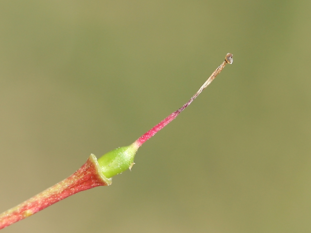 MEMO: 結実直後の楊貴妃の実で、萎れた雌しべの 根元に結実したばかりの緑色の可愛い実が確認できる