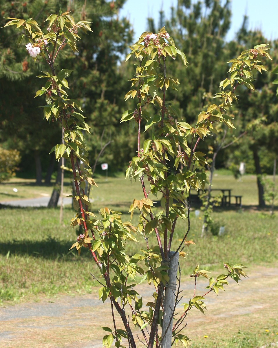 MEMO: 花時期が終了した楊貴妃で、花の名残があるが、 黄緑色の若葉が茂り、すっかり葉桜状態である