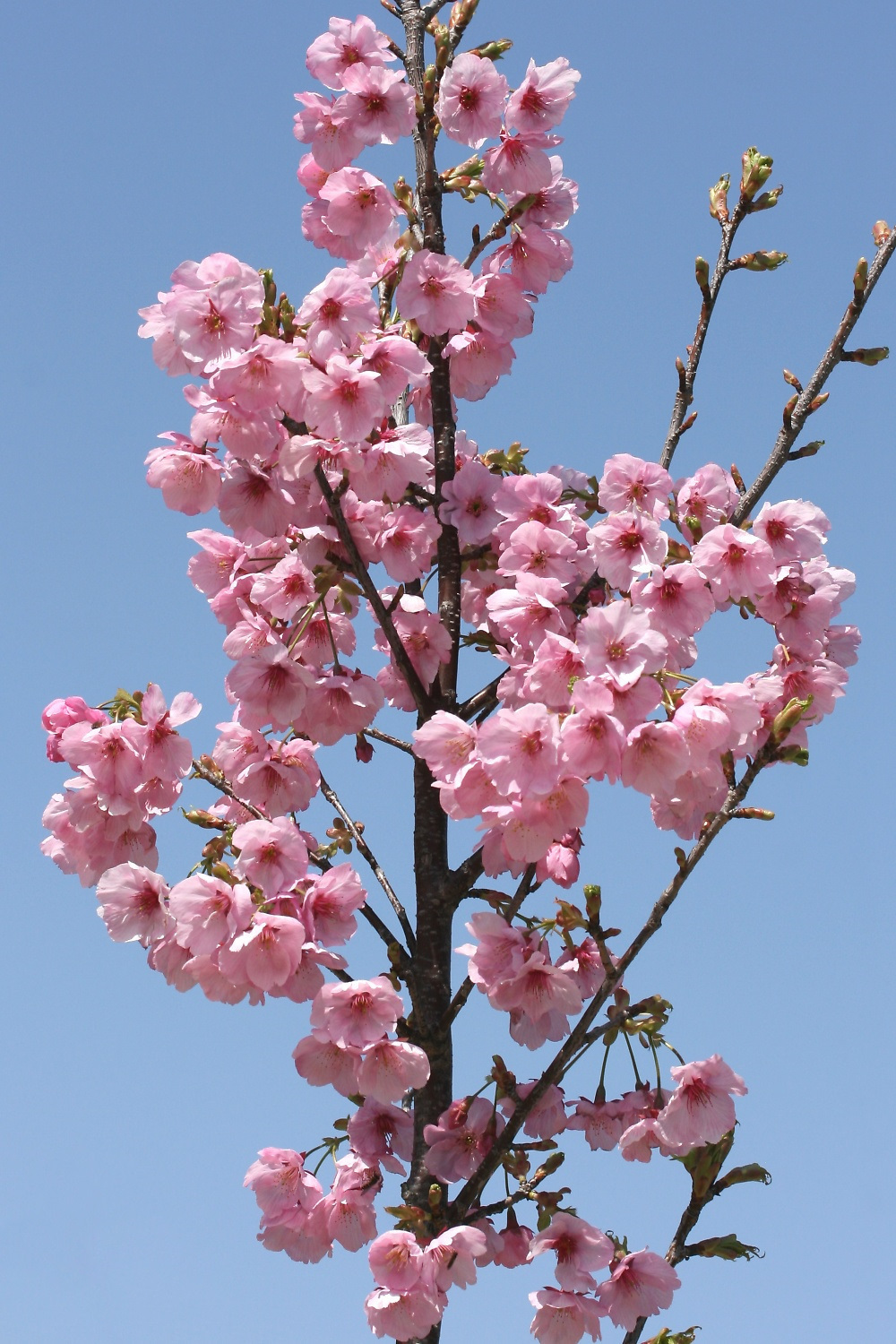 MEMO: 満開を迎えた陽光で、八重で少し濃いめの淡紅色で大輪の花が 若木のうちから密に咲き、とても華やかで見ごたえのある品種である