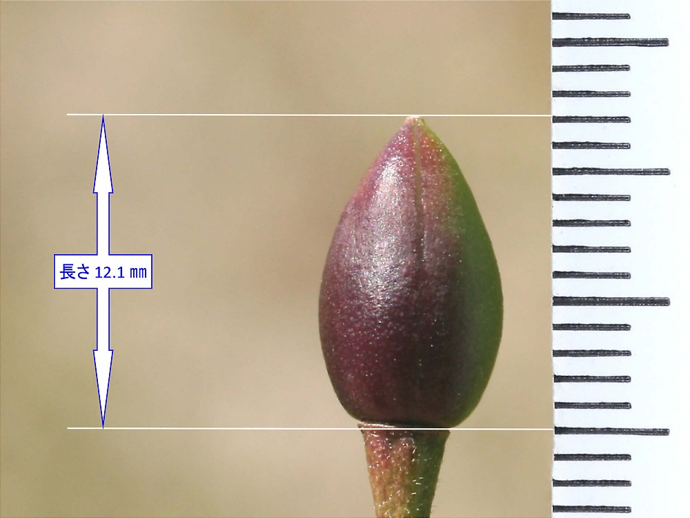 MEMO: 陽光の実の長さで、長さ 12.1 ㎜と1週間前から約2㎜ほど伸び、 当公園で最も大きい実で、この先どこまで大きくなるか楽しみである