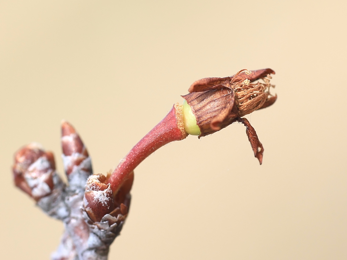 MEMO: アーコレードはニ季咲き品種で、真冬でもズ~~~ッと咲き続けており、 その真冬咲きの花からできた実で、出来たばかりでまだ殻を被った状態です