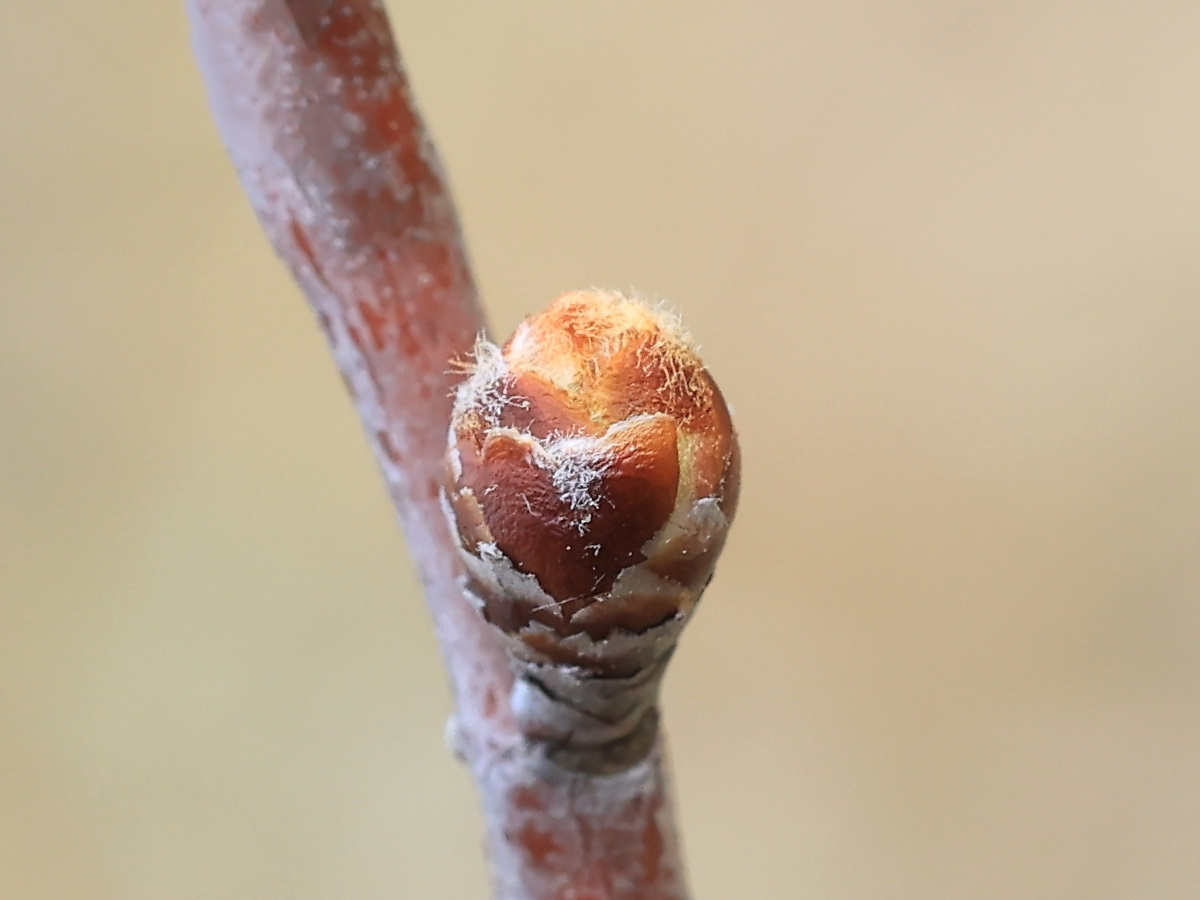 MEMO: 冬芽が膨らみを増し、花芽とわかる状態であるが、 この冬芽はアーコレードの春咲きの冬芽かどうか判断に迷うところです