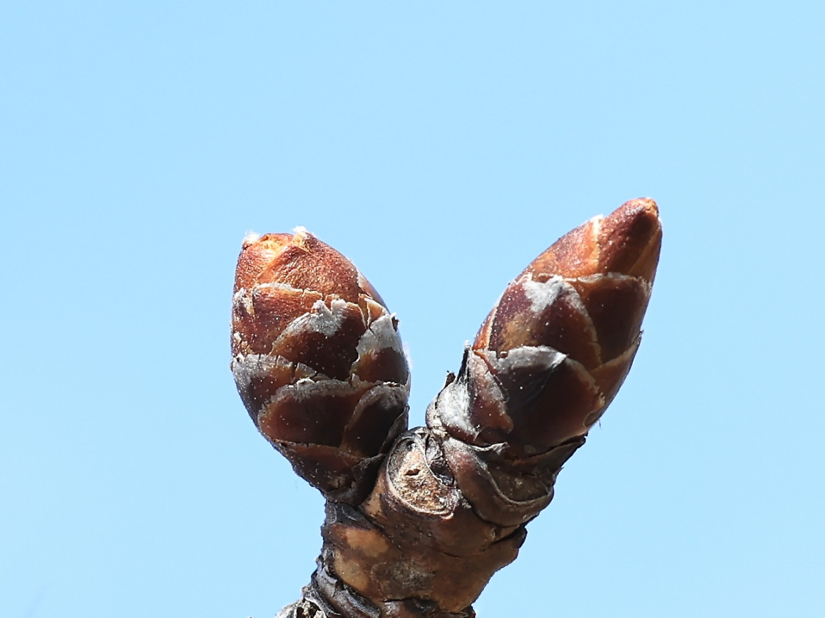 MEMO: やっと冬芽が膨らみ始め、先端にかすかに黄緑色が見え始めた状態です