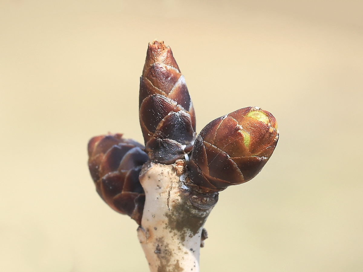 MEMO: 冬芽の膨らみが増し、先端が割れ、黄緑色が見え始めた状態です